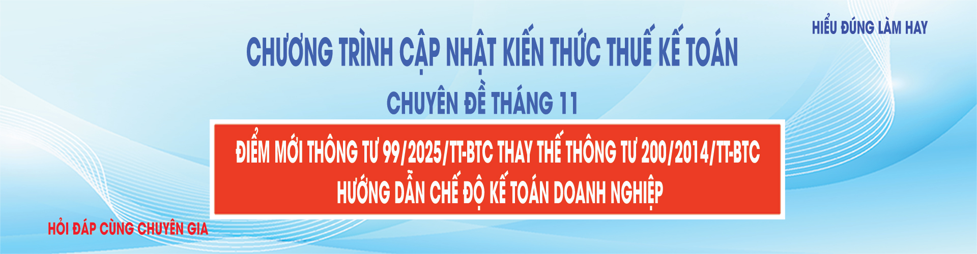 Lớp chuyên đề: Cập nhật Thông tư 99/2025/TT-BTC – Những điểm mới thay thế Thông tư 200 & Giải đáp cùng chuyên gia